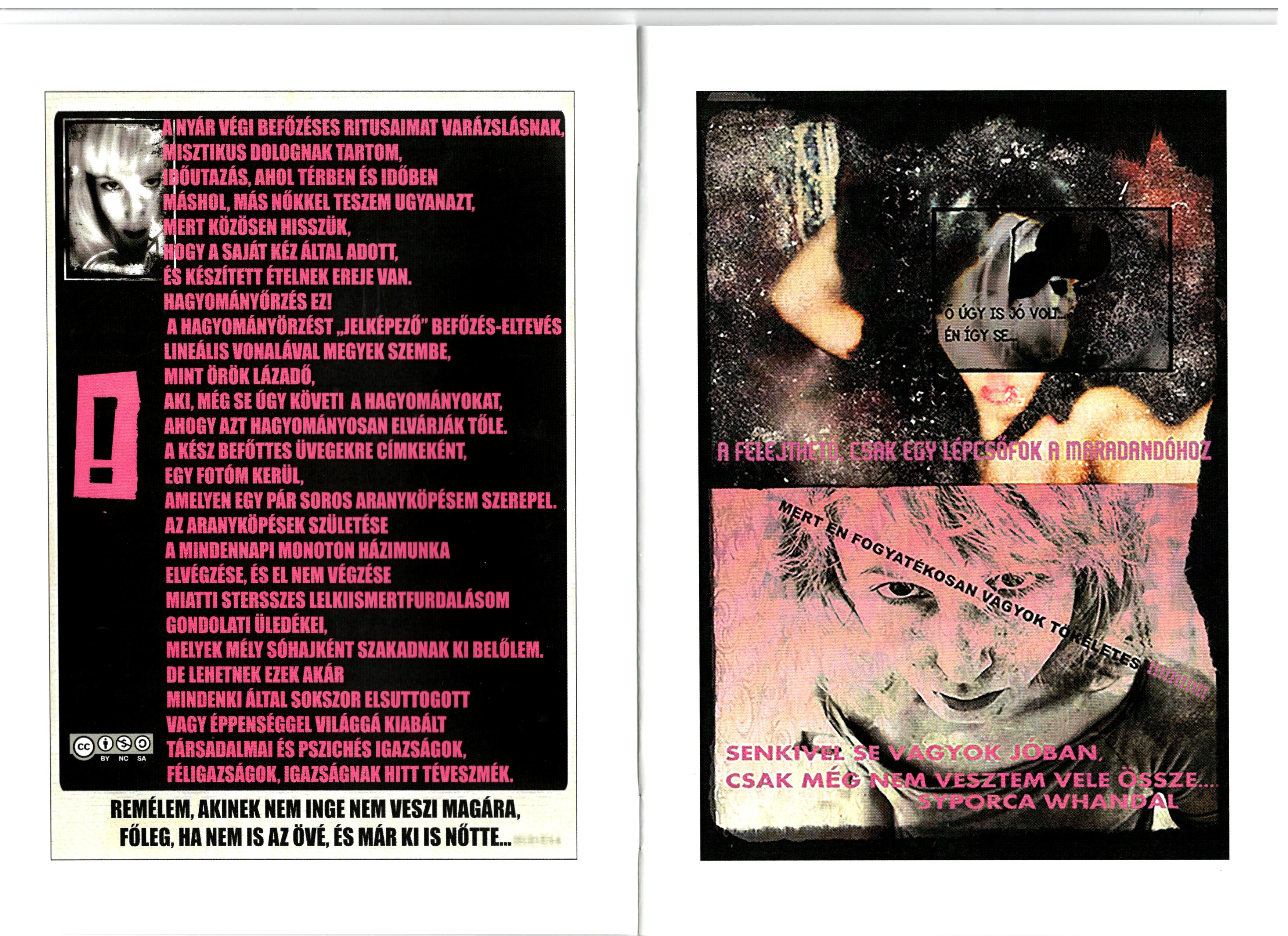 ARANYKÖPÉSEK Title: ARANYKÖPÉSEKPublished by: self-publishedRelease Date: 2018Contributors: SYPORCA WHANDALGenre: zinePages: 16ISBN13: -1500 HUF
