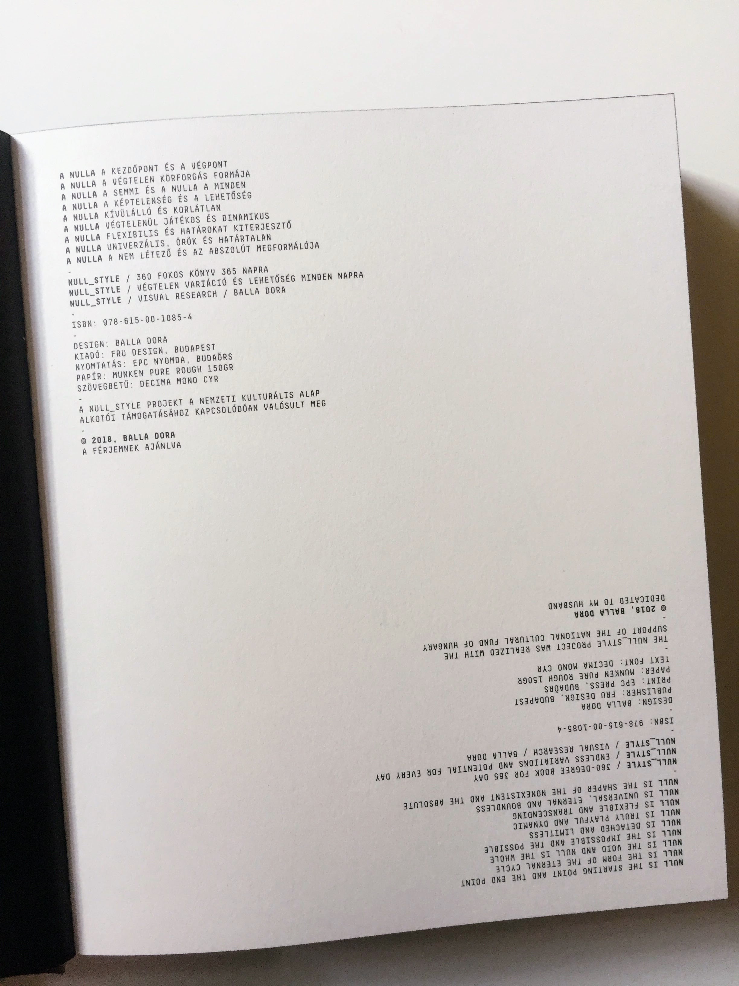 Balla Dóra: Null Style Title: Null StylePublished by: self-publishedRelease Date: 2018Contributors: BALLA DóraGenre: artists' bookPages: 365ISBN13: 978-615-00-1085-49500 HUF