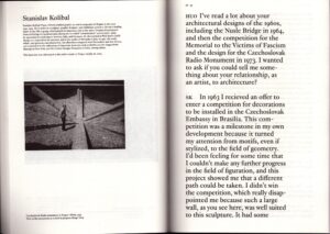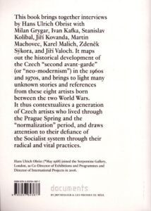 This publication is a result of visits and discussions carried out by Hans Ulrich Obrist in artists’ studios in Prague around 2001 and 2008. Interviews with Milan Grygar, Jiří Kovanda, Karel Malich, Zdeněk Sýkora, and many others, map the historical events as well as unknown stories of the actors of the Czech “second avant-garde” or “neo-modernism” of the former socialist block. The artists and intellectuals of this generation were born in between 1920–1945. They lived through the 1960s cultural upheaval known as the Prague Spring, becoming part of international cultural movements for a limited time, and witnessed the “normalization” of the 1970s when censorship was re-introduced. This series of interviews contextualize a generation of Czech artists within the historical events that marked their lives and careers, and draw attention to their urgency to resist historical events while keeping their artistic practices sustained, radical, and vital.