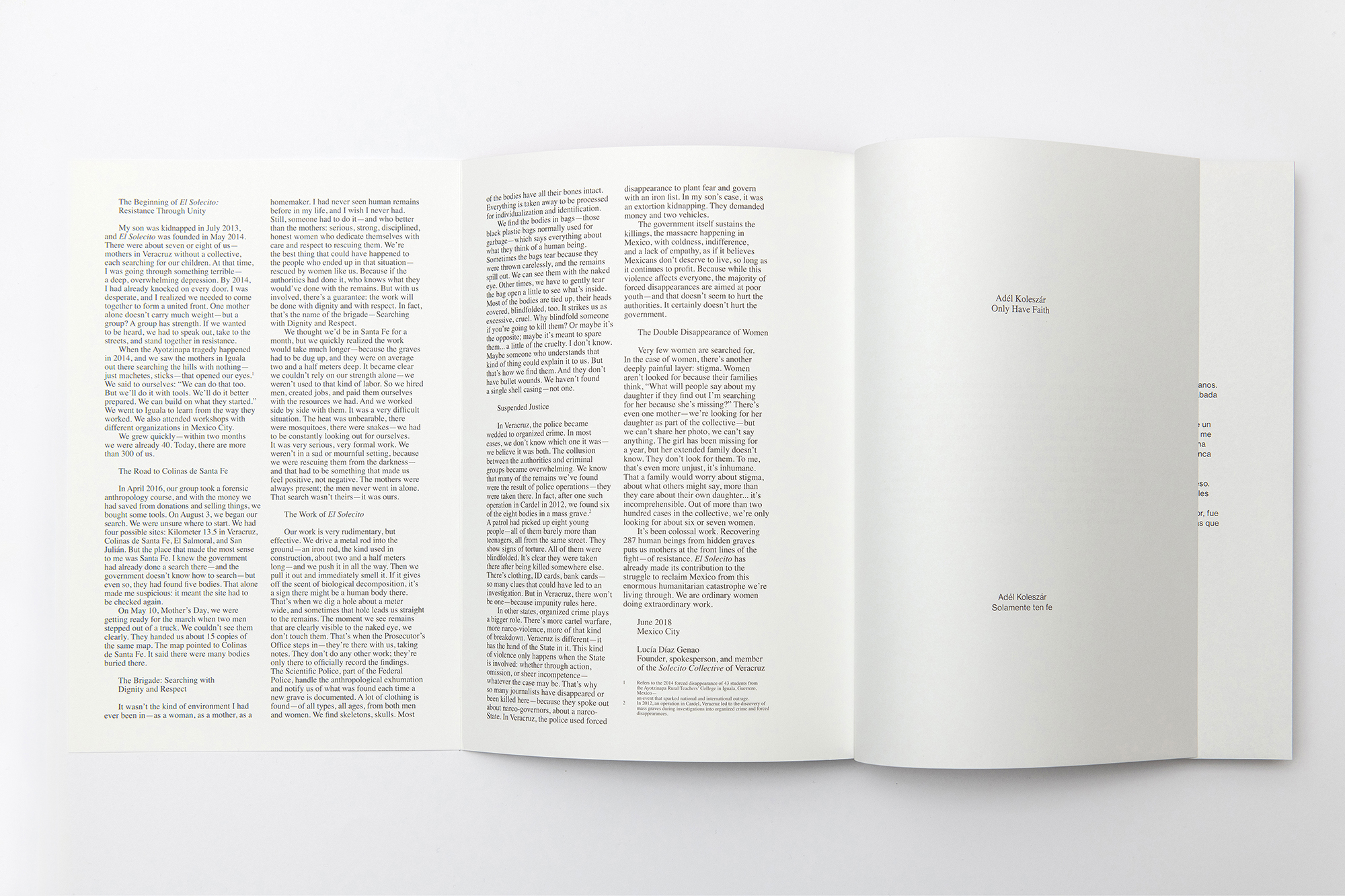 Adél Koleszár’s Only Have Faith explores the violence that has plagued Mexico over the past two decades, contextualizing it within the broader role of photography in representing and perpetuating terror. The so-called war on drugs, initiated in 2008 and funded by the U.S., destabilized communities to control resources, migration, and territories, leaving the population vulnerable.