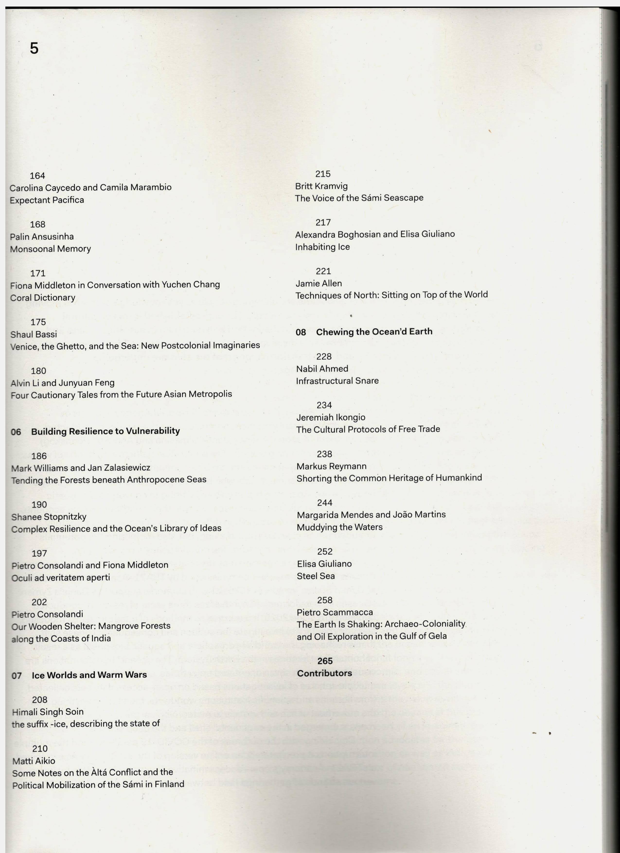 Oceans Rising is a companion reader to the research exhibition “Territorial Agency: Oceans in Transformation” commissioned by TBA21–Academy, an independent oceanic art-science initiative operating out of Ocean Space in Venice. The publication gathers forty-one thoughtful and generous contributions by artists, scholars, scientists, and ocean activists in response to the rapidly changing oceans. Writing from places of conflict and concern, the contributors respond to the magnitude and urgency of ecological devastation, and, most importantly, provide a multitude of narratives that strengthen our knowledge communities and commit to world-making practices from an oceanic perspective.