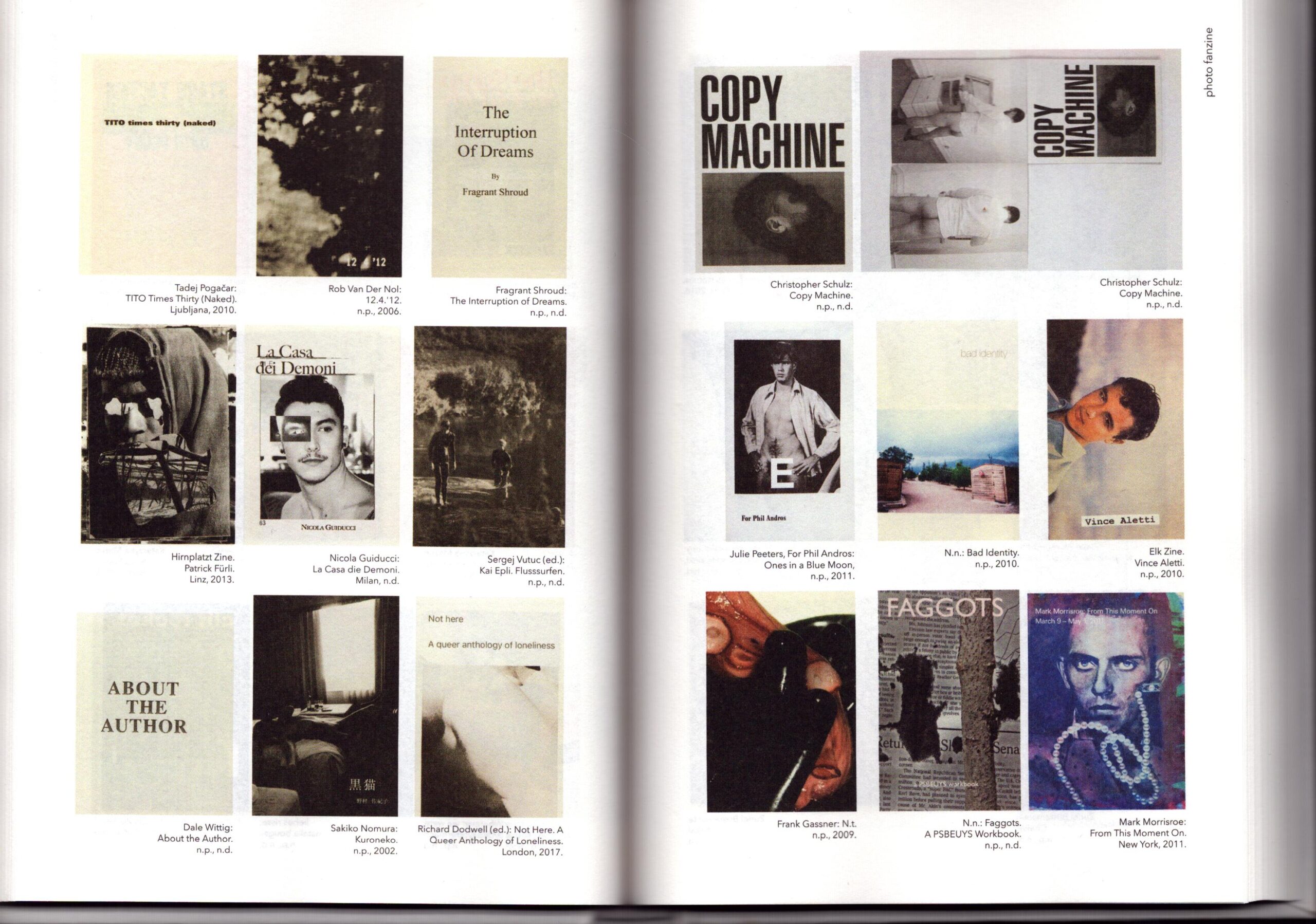 The selected examples focus on identity and image constructions of queer lifestyles. Fanzines, self-publishing, academic discourse, research, porn, and artist books are presented as pioneers of a non-heteronormative self-understanding. Vienna 2019
