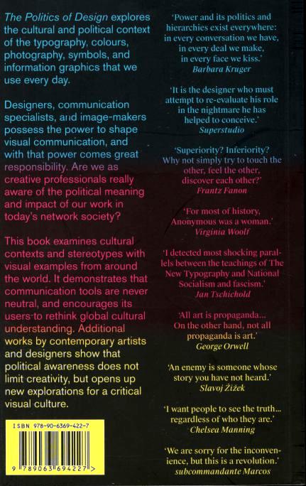 The Politics of Design explores the cultural and political context of the typography, colours, photography, symbols, and information graphics that we use every day. Designers, communication specialists, and image-makers possess the power to shape visual communication, and with that power comes great responsibility. Are we as creative professionals really aware of the political meaning and impact of our work in today’s network society? This book examines cultural contexts and stereotypes with visual examples from around the world. It demonstrates that communication tools are never neutral, and encourages its users to rethink global cultural understanding. Additional works by contemporary artists and designers show that political awareness does not limit creativity, but opens up new explorations for a critical visual culture.