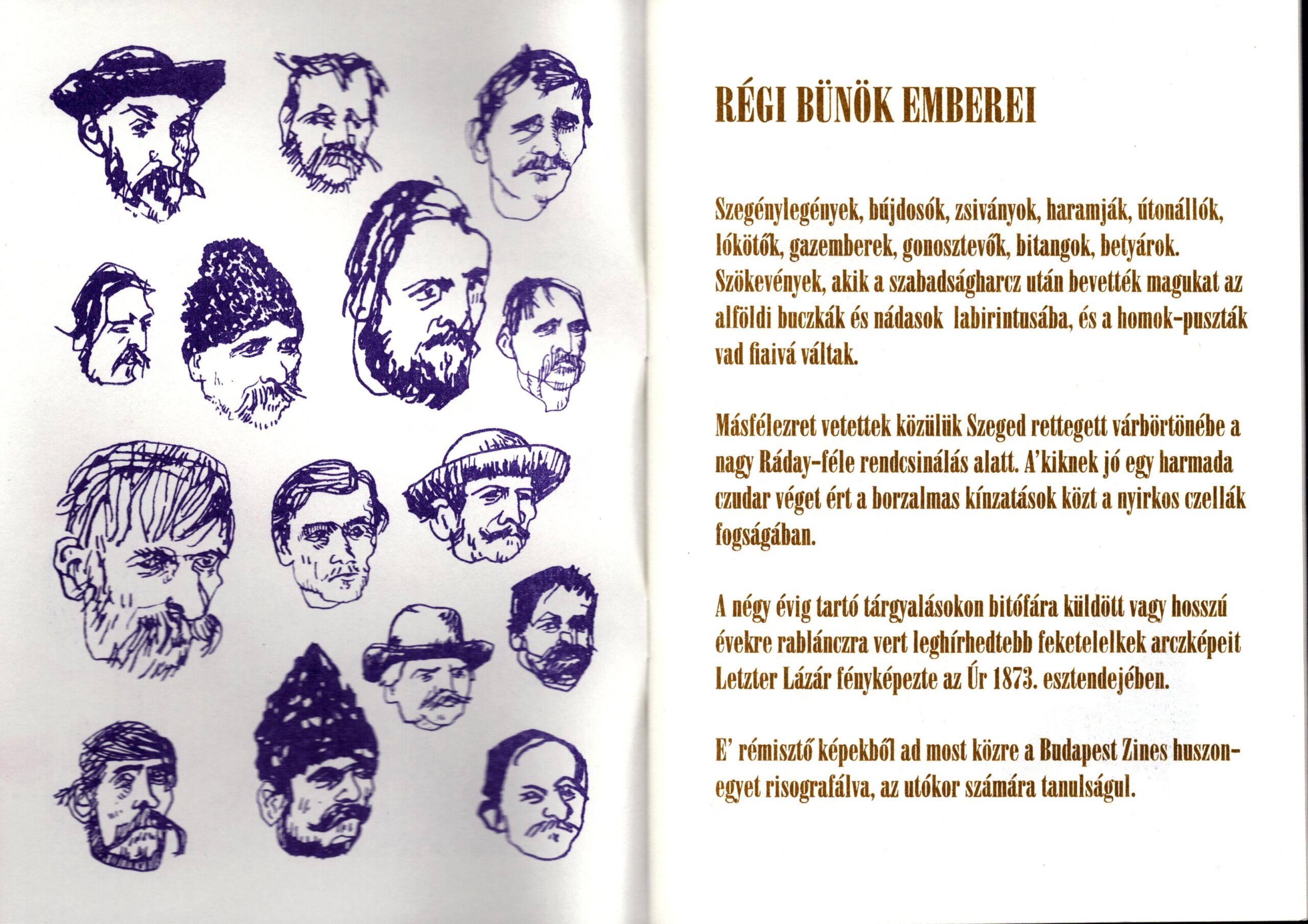 Title: Vályi Gábor: Régi bűnök emberei - Huszonegy arczkép a szegedi betyárperek elítéltjeirőlPublished by: BP Zines, Budapest