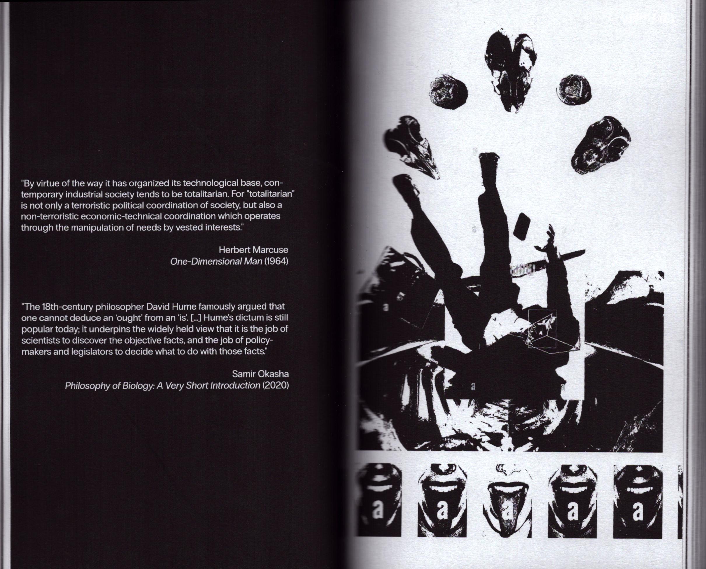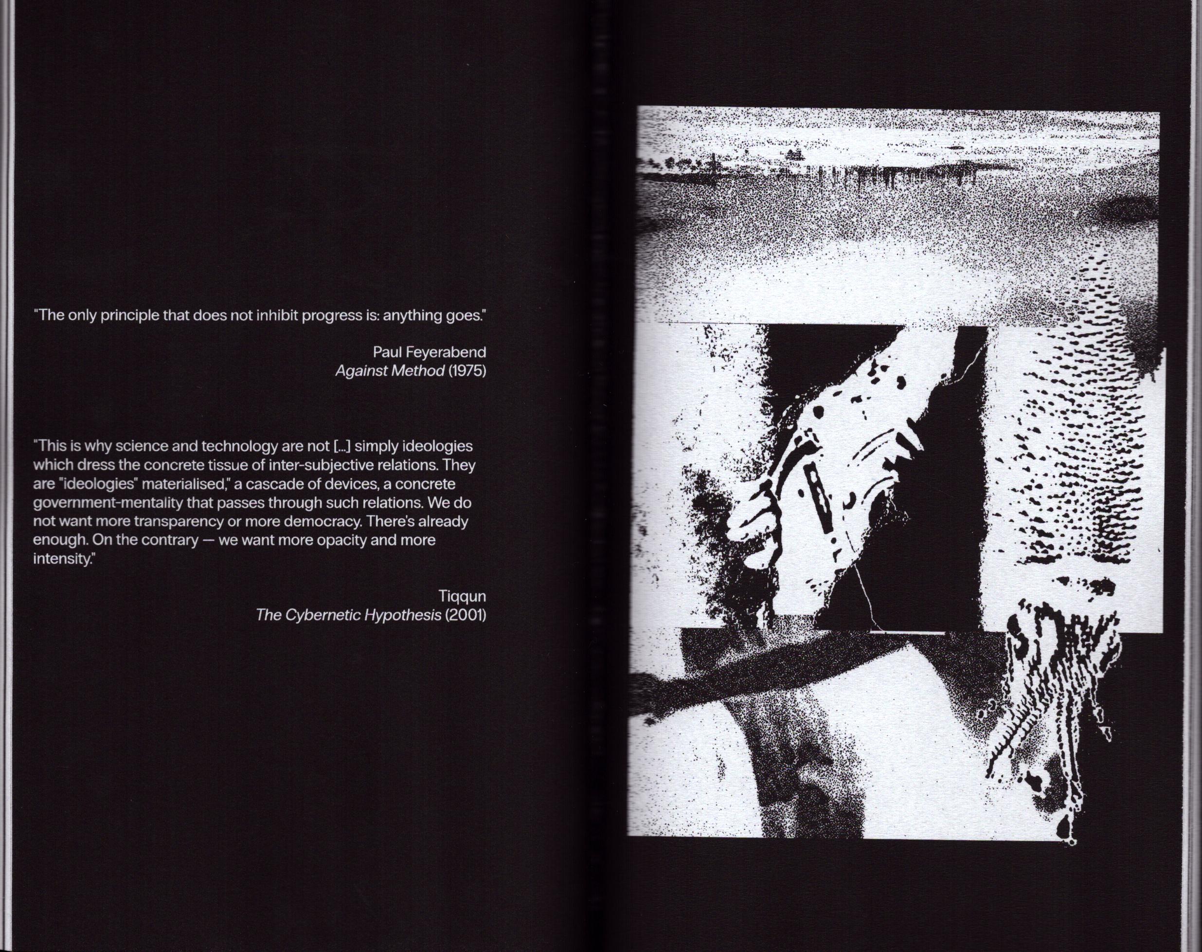 The book begins with an anonymous contribution from one of our closest affiliates, i0 xen0, our favourite transsexual post-doc whose dissertation work also considered the philosophy and history of science and the use of computational modeling in scientific practice, has constructed a contents page in prose that aims to help the reader find a comfortable position with which to begin reading the text. This introduction is framed around a question that is equally as interesting as the book title: "When is a body?", and as this title implies, the piece dwells on the idea of the temporality of the body through a look at such ideas as Kairotic time and bodily seasons.